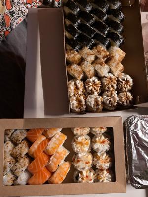 - В теплых ролла крайние кусочки отдаются запечатанными, так как большинству нравится дополнительная панировка на роллах!