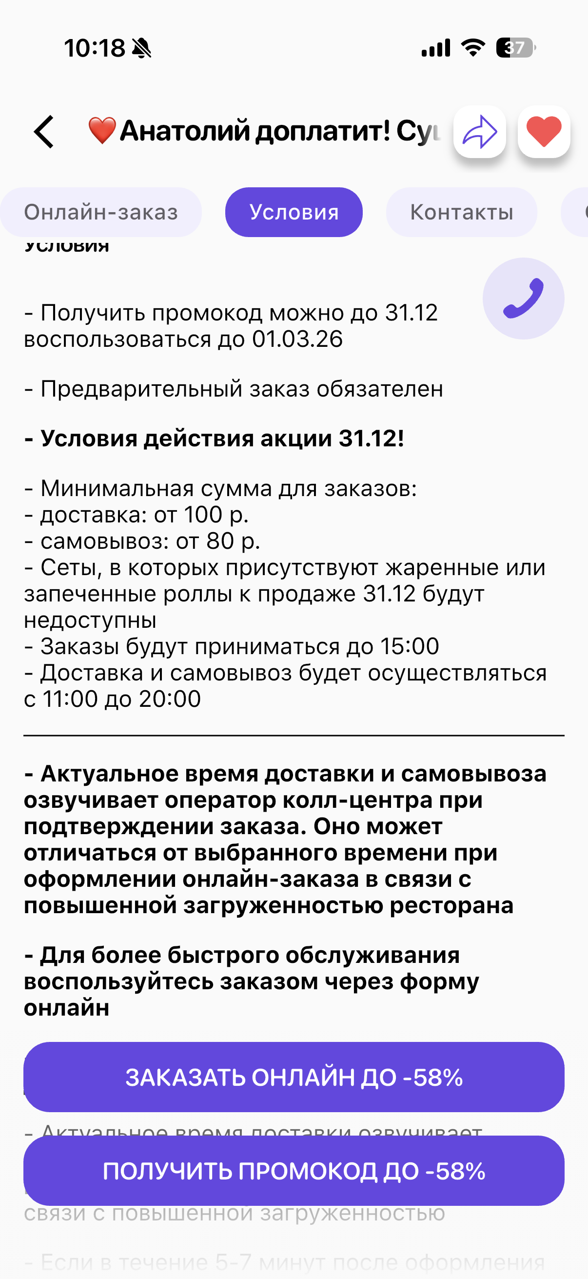 - Промокод дает право на скидку до 56% на суши-сеты от "THE СУШИ"