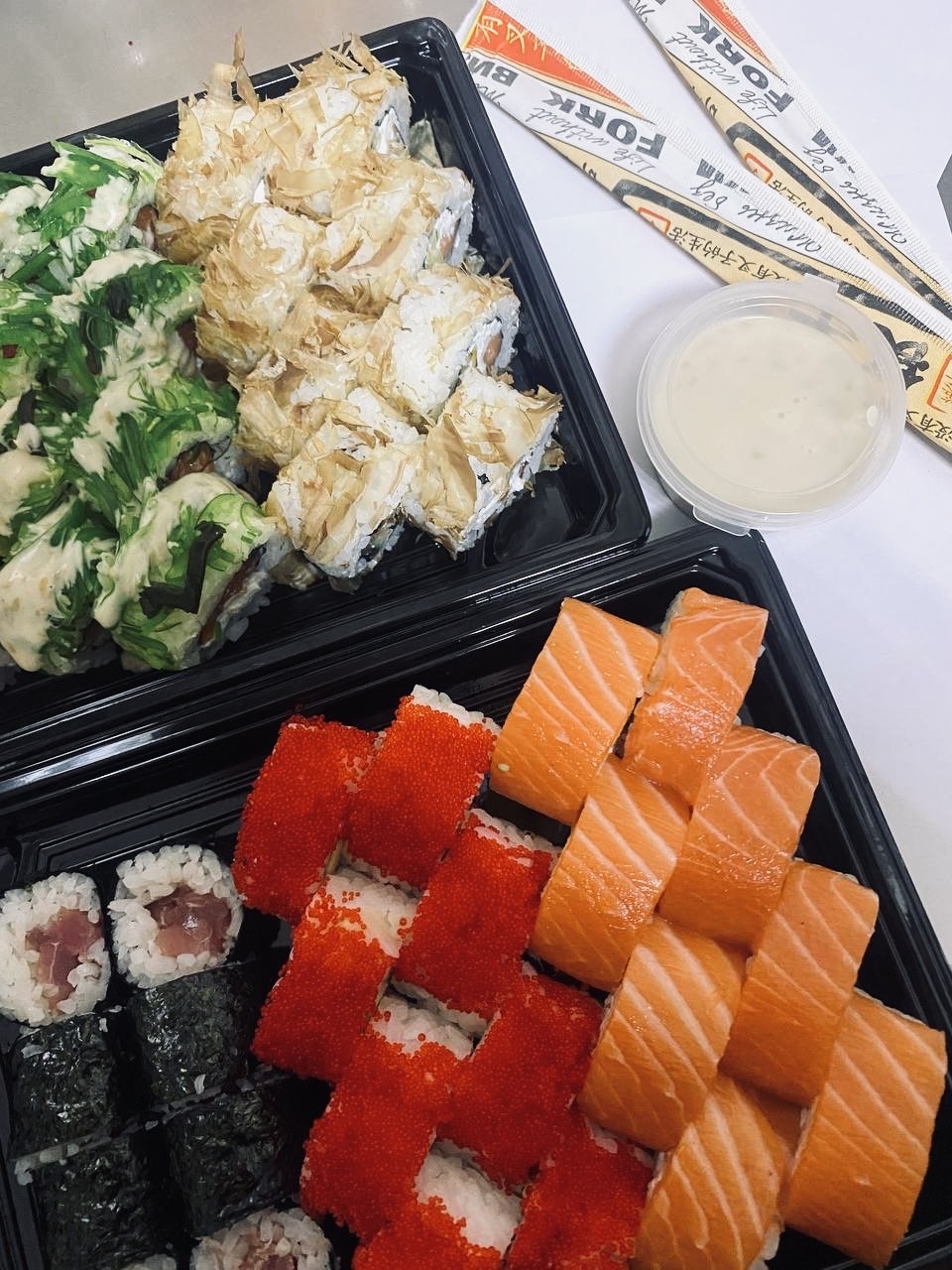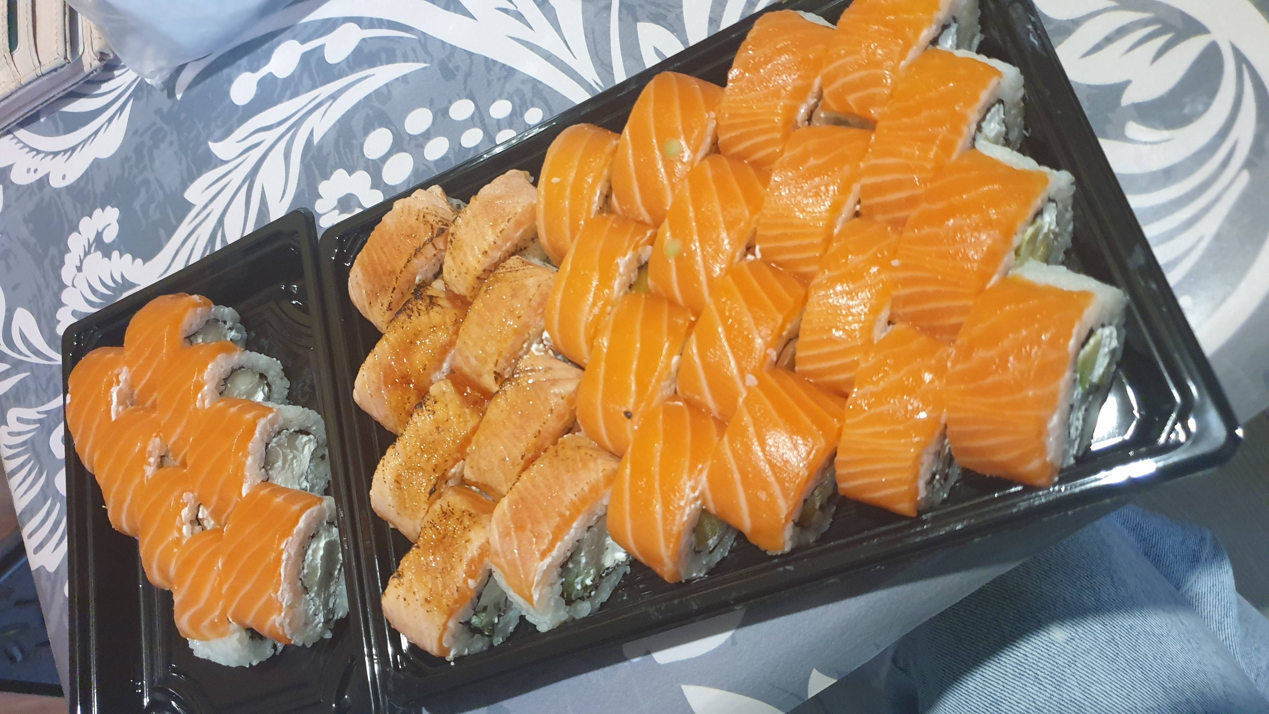 Очень вкусные роллы! Доставили достаточно быстро для пятницы, рыба хорошего качества, цена более чем приемлимая за такое колличесто в сэте. Спасибо❤️