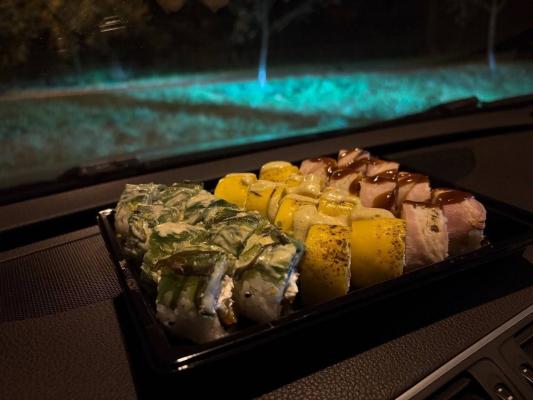Очень крутые роллы!!! Много ,вкусно и за копейки !Кто тут сравнивает с магазинами не понимаю ,сходства 0! В магазинах отстой 😅 Спасибо Вам ребята ,все круто ! Кушали на месте за цену как навынос ,очень приятно !