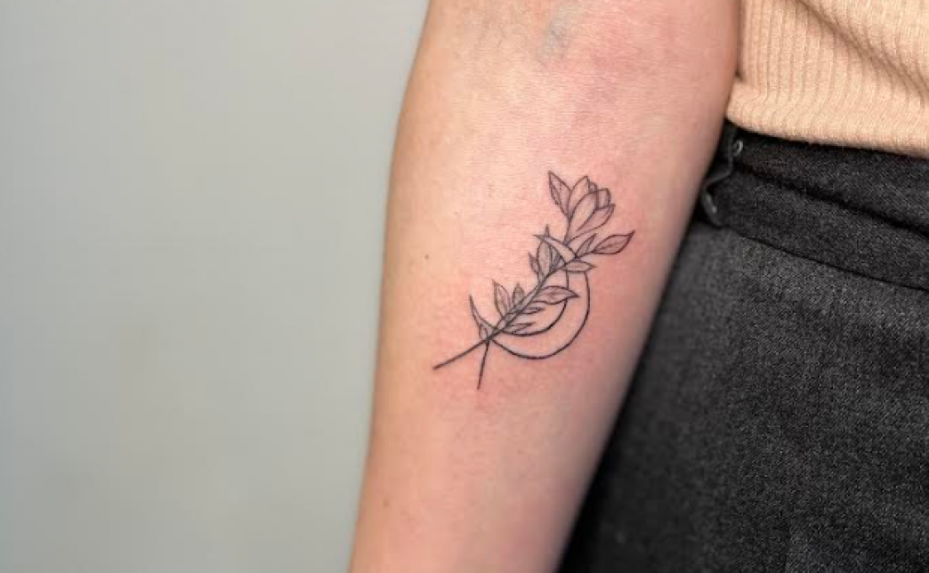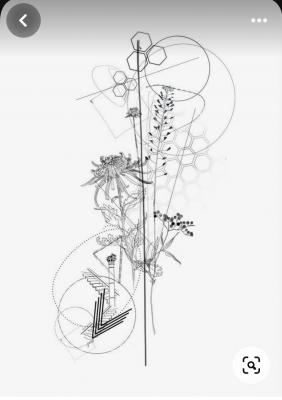- контурное тату черно-белое (геометрия, цветы, минимализм):