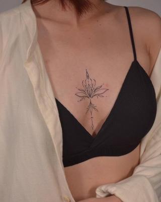 Контурное тату черно-белое (геометрия, цветы, минимализм) - одно из самых прогрессивных и трендовых стилей татуировки.