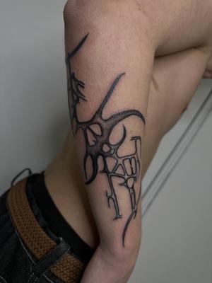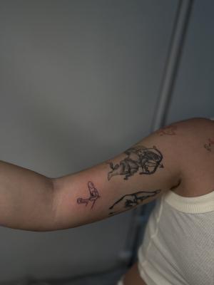 Тату в технике "Дотворк" - точечное нанесение и точечная растушевка. Техника заключается в том, что изображение наносится при помощи множества мелких точек, образующих различные тени и даже оттенки.